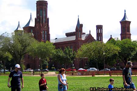 West of the Air and Space Museum is the Hirshhorn Museum & Sculpture Garden, with contemporary International art. West of it is the original Smithsonian museum in the red-brick Castle you see in the picture. Currently this museum displays an overview of the Smithsonian Institution. The Smithsonian consists of 18 free museums in DC.