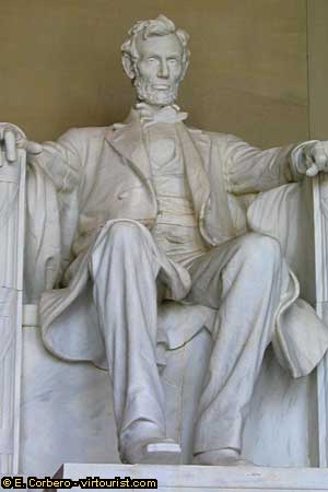 Inside the shrine there is a marble statue of Abraham Lincoln. Lincoln was the 16th president of the United States. He led the country during the Civil War. The war ended with the defeat of the Southern States, the end of slavery in America. Lincoln was shot on April 14th 1865 at Ford's Theater.