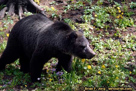Yellowstone is famous for its Grizzly Bear. The odds of seeing one, however are slim. They should NEVER be approached. This sub adult male was feasting on roots near a major thruway. Undetected by passing motorists, he did not create the massive 'Bear jams' the shut down the roads thru Yellowstone.