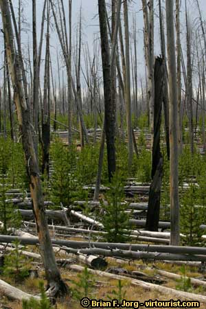 Evidence from the fire in 1988 is evident almost everywhere