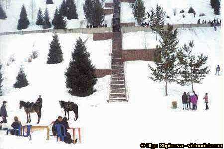You can reach the top of the dam by any way: passing over it on the roads from two sides by car or walking. But the most refined way to try your strength and to train your will is to take the dam in front by stairs ... There are more 700 stairs lead on the top (I don't remember the exact number, every time when I try to count them up I lose the count and have to start again from the beginning. By the way you can count yourself !). Here a special competition takes place once a year on the stairs running. Anyone can participate and win a prize (there are different age groups ). If you are tired, don't be distressed! Look, how many resting places there are on the dam!