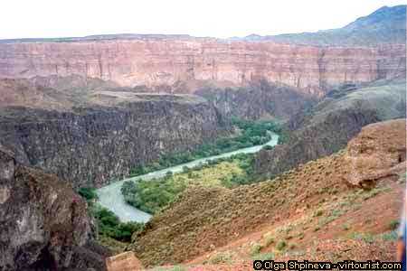 Charyn river. It was an ocean floor at the prehistoric time. You can learn a geological structure straight here!.. This territory save the paleontologic remains of the ancient elephants, rhinoceros, wolves which lived here a few million years ago. But the most important for us to admire with this incredible nature landscapes of high exquisite value. There is a trout in that river!