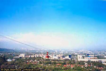 Almaty is a city-garden. You see here more greens then buildings, though this picture was made in April when there are not so many leaves on trees. It's the main problem I met when I tried to take photos, almost all buildings was hidden by trees. News for those who left Almaty for other countries: the center is moving closer to mountains. Timiriasev avenue now goes across Samal microregion straight to Dostyk av.(former Lenin Avenue), you can see it on the right of the high dark blue building (new Turan-Alem Bank). On the pic: south part of the city.