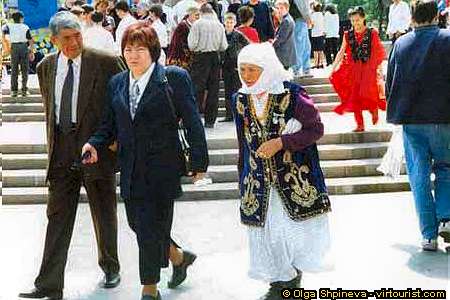 Old people from the country usually save and wear traditional dresses. Till the present time you can meet in the street old women in national Kz dresses.