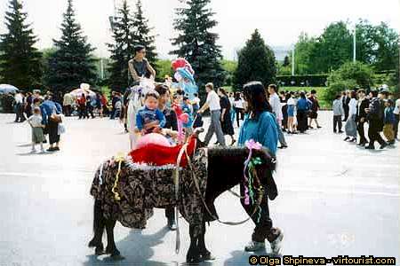 There is no holidays without horses and riding. Traditionally horse took a main place in the Kazakh households in the country. But here in the city it may be the first contact with this "animal".