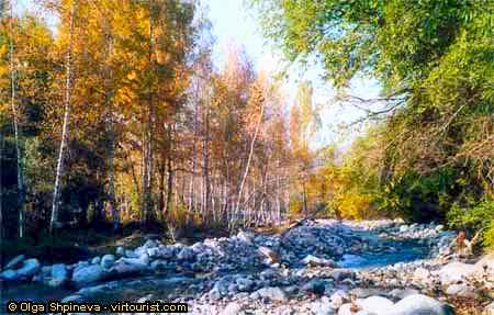 The typical landscape near Almaty. In a few minutes driving on the Dostyk Avenue you can find yourself here, at the small river. Some twenty meters on the right there is a transport road. People come here at any season. Its the good place to relax. The most courageous ones take a bath in the ice water. They say it affects positively their health.