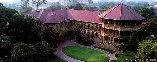 This is Vimanmek Mansion, the world's largest structure of golden teakwood. It dates from 1901 and was home to King Rama V, his family and concubines for six years while they waited for completion of the new royal palace. Why he got tired of living in the Grand Palace, I have no idea, but he must have loved Vimanmek because it's pure English Victorian, it was the first building in the country to have electricity and an indoor bathroom, and it was for women only, except for himself.