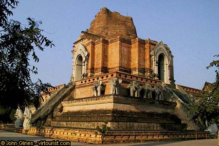 Here’s the large chedi of Wat Chedi Luang. Built in 1401, it was the tallest structure in Chiang Mai for 500 years. It was reduced to its present height by an earthquake in 1545.