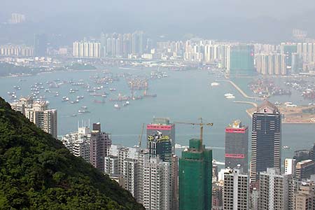 Here's another view from the Peak Circuit. Perhaps the most popular way to get up to Victoria Peak from Central or Mid-levels is to take the Peak Tram, a funicular railway that first began service way back in 1888. The incline is one of the steepest in the world for a tram line, and the views out the window on the 10-minute ride to the top can be pretty dramatic! The tram runs every 15 minutes or so, though sometimes there may be a bit of a wait due to the crowds. (The tram carries an average of 11,000 people a day!)