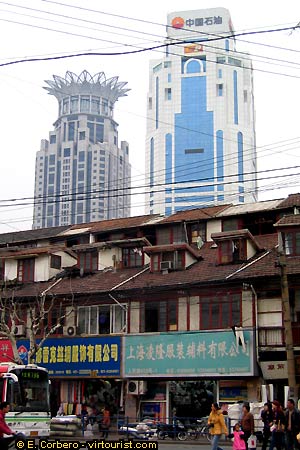 This is one of the pictures I took in one of Shanghai's streets. Here you can see two new buildings in the background, and the small traditional houses in the foreground.