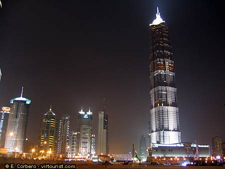 Jin Mao Tower is open to the public. On its 88th floor there is an observation deck, which is the highest in China. But if you want to skip the entrance fee, you can go to the bar on one of its top floors. To get there you will have to take several lifts. First you take one that takes you to the Grand Hyatt Hotel's Lobby. A second lift will take you to a bar with the tallest atrium I have ever seen. It is almost 500 feet (152 m) high, quite a spectacular view. Two more lifts will take you to the bar at the top. There is a minimum order in this bar. If you do not want to order anything, you are not allowed in. There is a great view from the bar's door through the glass windows, anyway. Bring your camera!