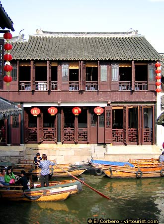 Zhouzhuang has more than one thousand houses. Of them, almost one hundred have their own courtyard and arch gateways made of stone brick.