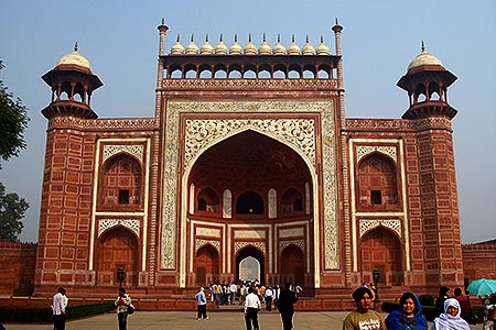 Once inside the Taj Mahal complex you will follow a path that will take you to the main gate, on the left hand side. The gate is already a wonderful construction. Walking through the gate, you will have your first glimpse of the monument that you have seen millions of times in pictures and films.