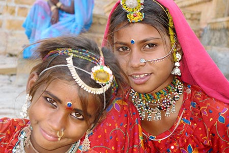 In the picture you can see two little kids with their traditional jewels and clothes.