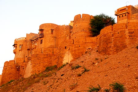 The best time to observe the fort's walls is just before sunset, when the yellow stone becomes red.