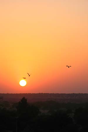 Jaisalmer is very famous for its desert sunsets. If you do not have time to make it to the desert, you can go to the roof of your hotel and enjoy the sunsetting on the distant desert.