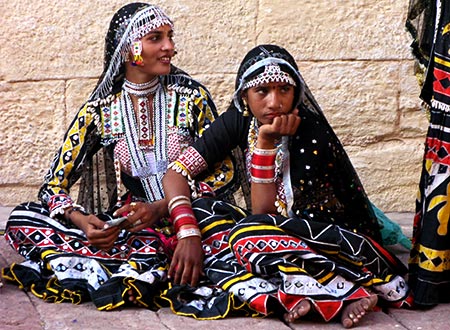 In the picture you can see a couple of young ladies with their colorful outfits.