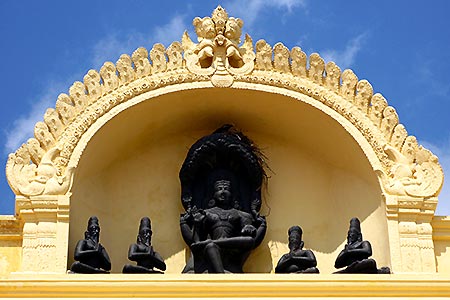 One of Kanya Kumari's main tourist attractions is the Kumari Amman Temple, dedicated to the virgin goddess Devi Kanya Kumari. The temple is located in the center of the town, next to the shore. You get to the temple walking along the town's main street.