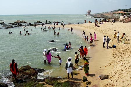 Next to Kumari Amman Temple there is a ghat and a beach, where Hindus come to take a holy dip. The area is more active during sun set and sun rise, but there is people taking ritual baths all day long.