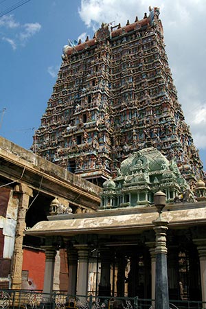One day Lord Shiva (the destroyer, one of the top Hindu gods), came to earth and proposed to Meenkashi. The marriage was supposed to be the biggest event on earth. Lord Vishnu (the Protector, another top Hindu god) was delayed by god Indra, and could not attend the wedding, which was presided by a local god (Lord Azhagar, elder-brother of goddess Meenakshi).