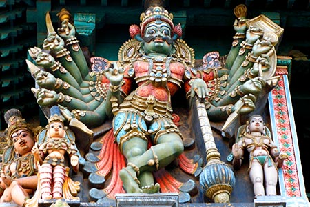 The festival of Chithirai Thiruvizha lasts almost two weeks. The first eight days statues of the married couple are taken to the streets of Madurai on different animals. The 10th day of the festival is when the wedding takes place. On the 11th day takes place the car Festival, when the statues are carried in a big Ther (car) and lord Azhagar is brought from a town 20 km from Madurai, Azhagar Kovil.