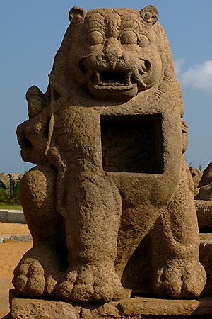 One of the main tourist attractions in Mamallapuram is the Shore Temple, located by the sea on the Bay of Bengal. You can get to this temple on a pleasant walk from the town center.