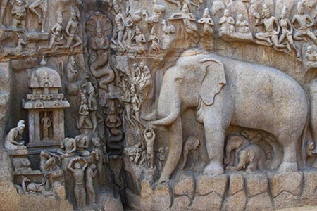 Not far from the center of the town you will find Arjuna's Penance, a huge bas-relief (the biggest in the world) depicting scenes from the Mahabharata carved out on a rock facing the sea.