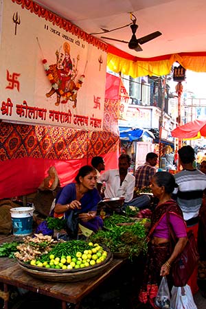 In this picture you can see a local market in one of the streets in South Mumbai.