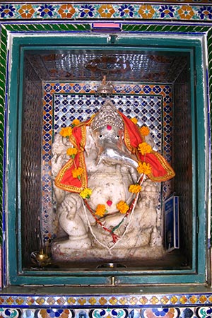 In the picture you can see a small shrine with the god Ganesh, at the entrance of the Palace.