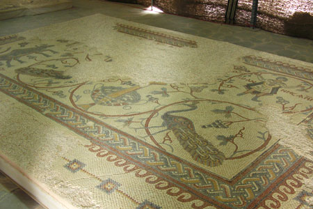Next to the ruins a modern chapel was recently built. Here you can see some of the mosaics found in the area.