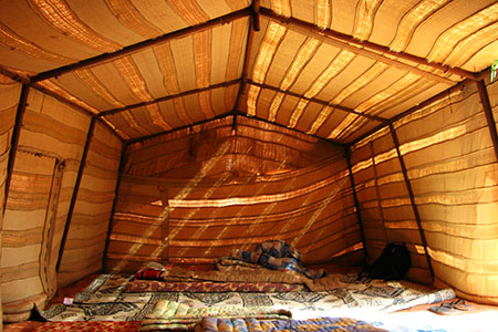 In this big tent sleep several tourists one next to the other. During the day the tent gets very hot, but don't worry, at night temperature drops a lot. Before you come, ask your guide if you need to bring sleeping bags and towels.