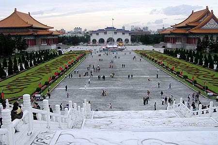 The CKS complex also houses the Taiwanese National Theatre and concert hall (shown on the left and right of the picture) and the Gate of Great Centrality and Perfect Uprightness (on top) which serves as the entrance for most visitors.