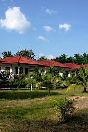 North of Taling Ngam, on the west coast, is Nathon Bay. On the south part of Nathon is a long, but narrow, beach with some nice bungalow resorts, low- and mid-range. North is the local town of Nathon.