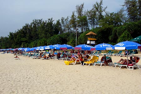 Karon Beach area is the natural extension of Patong Beach. The beach is long and wide. The area is well developed, with many hotels, restaurants, bars, shops, banks, etc. Karon beach is not as busy and touristy as Patong Beach, but it is not a quiet place either.