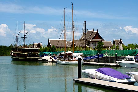 On the East coast of Phuket there are no proper beaches. One of the only tourist spots is the Royal Phuket Marina, a luxury apartments resort with a private marina and some restaurants, on the central East coast.