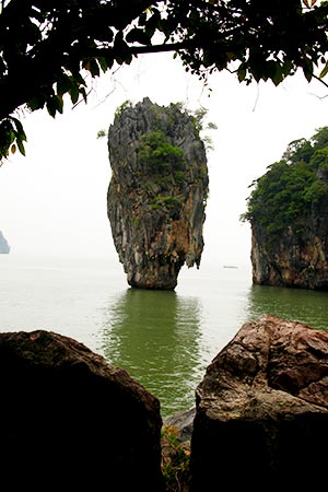 On the following pages I will give you information on the one-day excursions you can do from Phuket. One of the nicest is Phang Nga Bay, north of Phuket, with its rocky cliffs and coves, and the popular James Bond Island (in the picture).