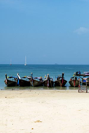 East of Phuket, on mainland Thailand, you have the province of Krabi, with its nice beaches. You can get to Krabi from Phuket by bus or on a ferry. The ride will take you three hours. Krabi has a good offer of places to stay.