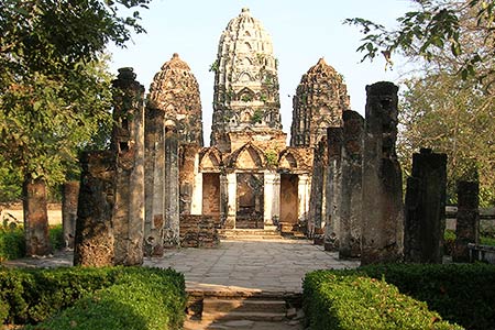 Wat Si Sawai is relatively small complex, the main highlight of which are three Khmer-style towers. Like some other sites here, this temple was originally Hindu and switched to Buddhist. The relationship here between Hinduism and Buddhism was pretty complex, with the two religions largely co-existing for centuries.