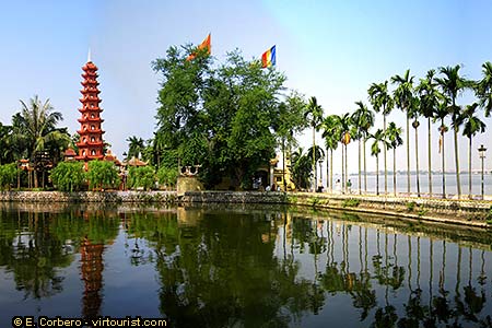 The Tran Quoc Pagoda sits on an island in the West Lake. To get here from the Old District you can walk, or take a taxi. The King Ly Nam De commissioned the construction of this pagoda on the river bank 1400 years ago. During the reign of King Le Kinh Tong (1600-1618), the pagoda was moved to its current location.
