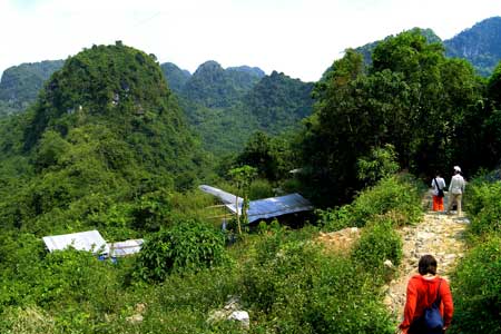 In the picture you can see part of the path that you have to follow in order to get to the Perfume Pagoda. On the way up (and on the way down) you have some places to rest. Local people have "bars" with chairs and tables, where you can have a soda or a juice. Prices, to my surprise, were not much higher than in Hanoi. -- I still wonder why they do not charge a lot more. It has to be a hard job bringing all these goods that high.