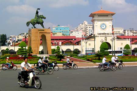 We will start the virtual tour of Saigon in front of the Ben Than Market. The square you see in the picture can be considered the center of Downtown Saigon.