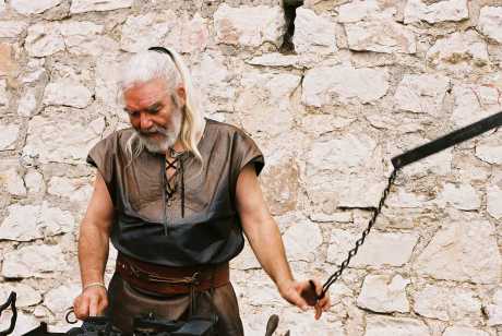 But like in medieval times, a military camp attracts all sorts of side activities. Of course, there is a blacksmith with his forge, who makes and repairs weapons and coats of mails.
