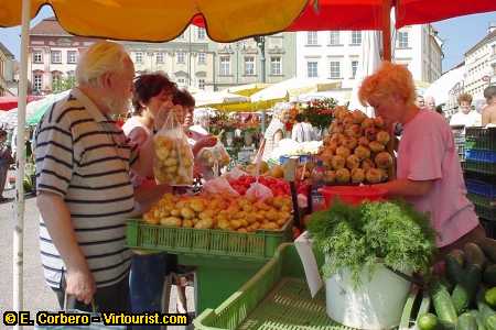 As you can see in the photo the market on Zelny Trh is still alive. The market specialties are fruits, vegetables and decoration flowers. Now we will walk to the Cathedral of St. Peter and Paul (Petrov), which sits on the hill on our left ...