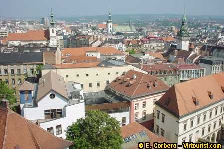 The square where we were a moment ago (Zelny Trh or Cabbage Market) sits on our right (no, you can not see it from here). The tower at your right is the Old Town Hall (which we will visit in a few minutes). In the middle of the image you can see the Church of Saint James the Great. And at your left, the Church of Saint Michael.