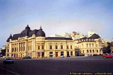 The current square exists in its present form since the 1940s when massive demolitions took place in order to make room for the new Royal Palace. The golden building in the middle was built between 1891 and 1914 under the direction of French architect Paul Gottereau, as The Royal Charles the First Foundation. The Communist allergy to everything reminding the people of their glorious past under the monarchy turned it into what it is to the day, a library. But the complex formed of 3 wings (2 classic ones Dacia and Central, plus a modern one added after 1989) houses also an art gallery an EU Information Center and a bank. Across the street you'll find the National Art Museum (exhibiting many interesting galleries of medieval up to modern age paintings and sculptures, both by Romanian and foreign masters) and nearby also the Hilton Hotel and the Romanian Atheneum, Bucharest's most reputable concert hall.