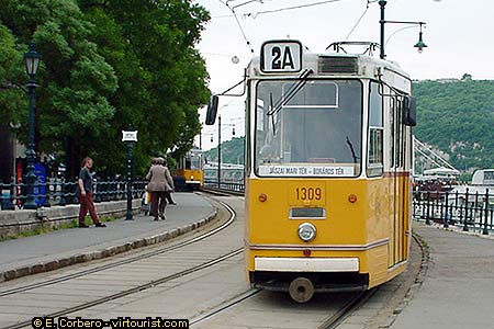 Here you can see a typical tramway. Buses, trolley buses and three underground lines complete the local transportation network. If you plan to visit Budapest, its a good idea to buy a single day ticket or a three-day tickets (really cheap). You can also buy single trip tickets or 10 trip tickets. Local transportation works pretty well in this city, but traffic is somewhat chaotic. So if you come to Budapest with your own car, you better park it and use local public transportation.