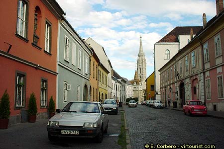 Can you see the tower in the middle of the image? Thats Matthias Church. Lets walk there ...