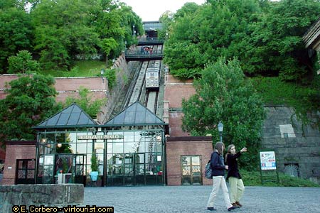You can see here the funicular that goes to the Castle District. Because cars are not allowed in the District, this funicular is the best way to get up there. Another way to get there is walking, its a nice stroll from here.