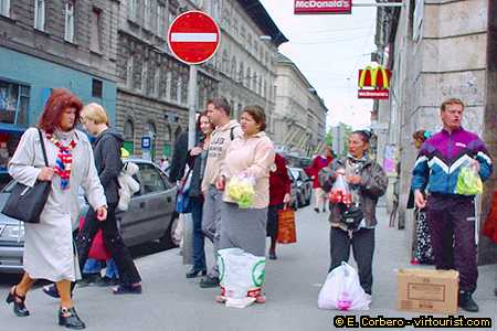 After many decades of a communist regime, Budapest is catching up quickly with the rest of Europe. But, as you can see in the photo, changes dont affect everyone. Unfortunately some people have to sell vegetables (or whatever) to make some money.