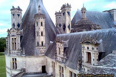 On the second floor of the castle you will find The Hunting and Nature museum. Francis I passion was hunting, and his favorite game preserve was Chambord. In the museum you will find several pictures depicting the history of hunting. Once you have visited the second floor you have to go to the terraces. The views from here gladly surprised me. As you can see the roofs are richly decorated. Although the castle is very beautiful from a certain distance, once you get here you understand why 1.5 million people come here every year.